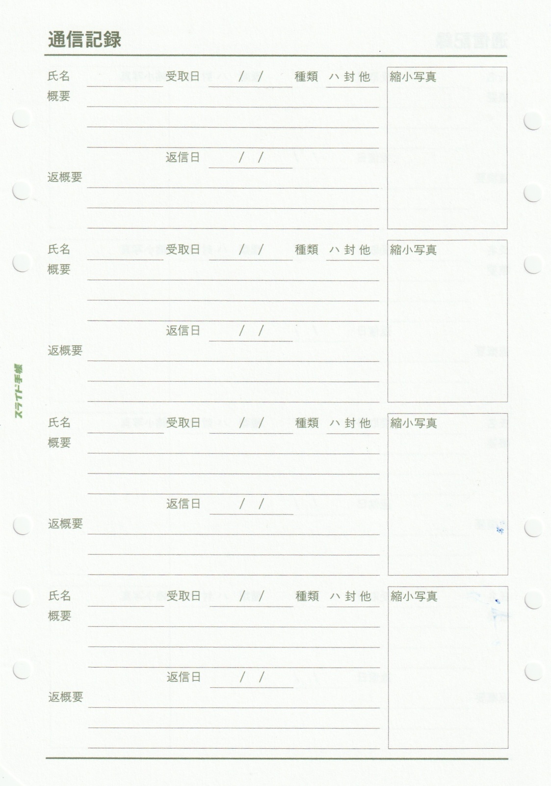通信記録シートリフィル